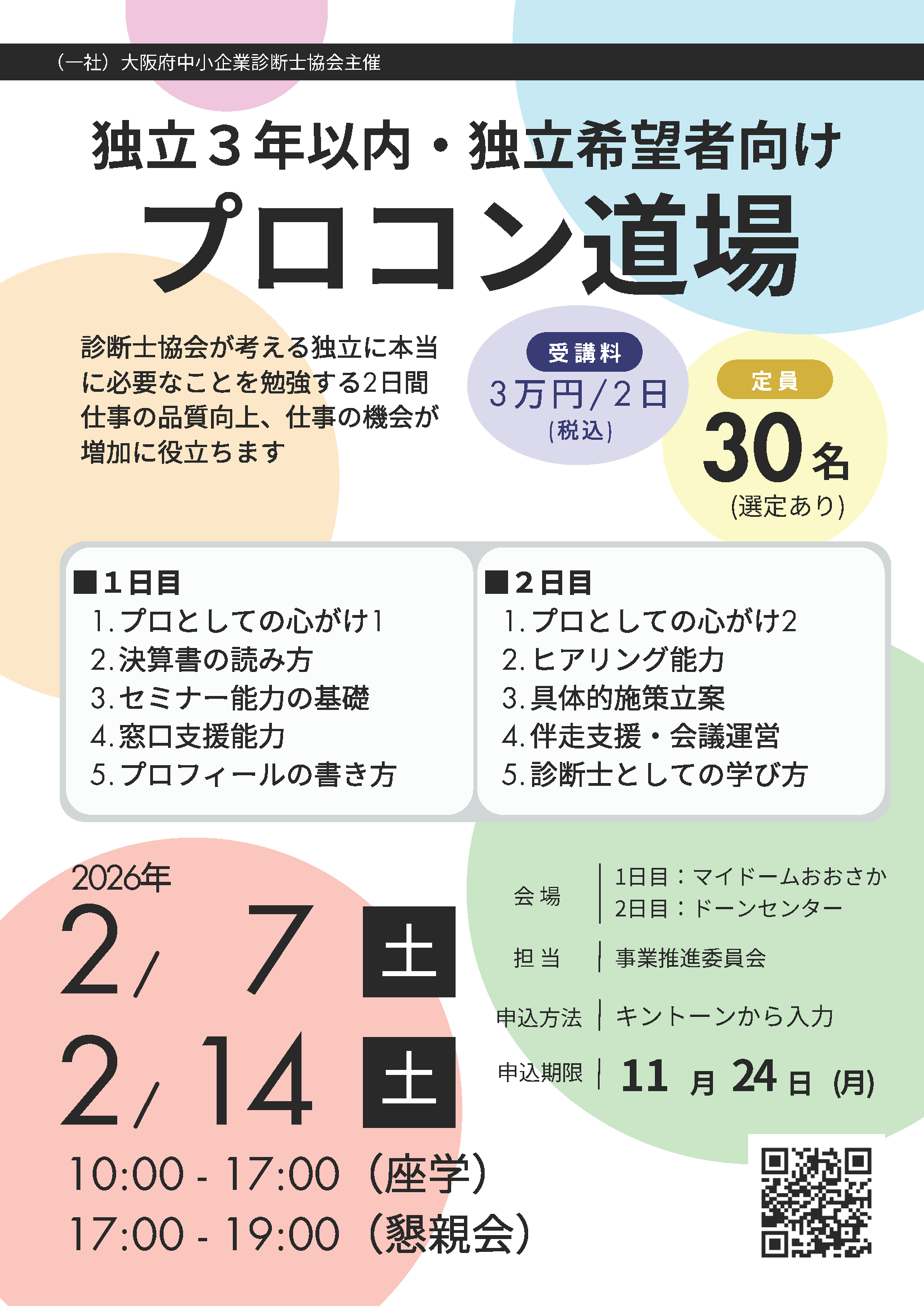 この度、大阪府中小企業診断士協会では独立してから3年以内の方、プロコンを目指す方に向けた