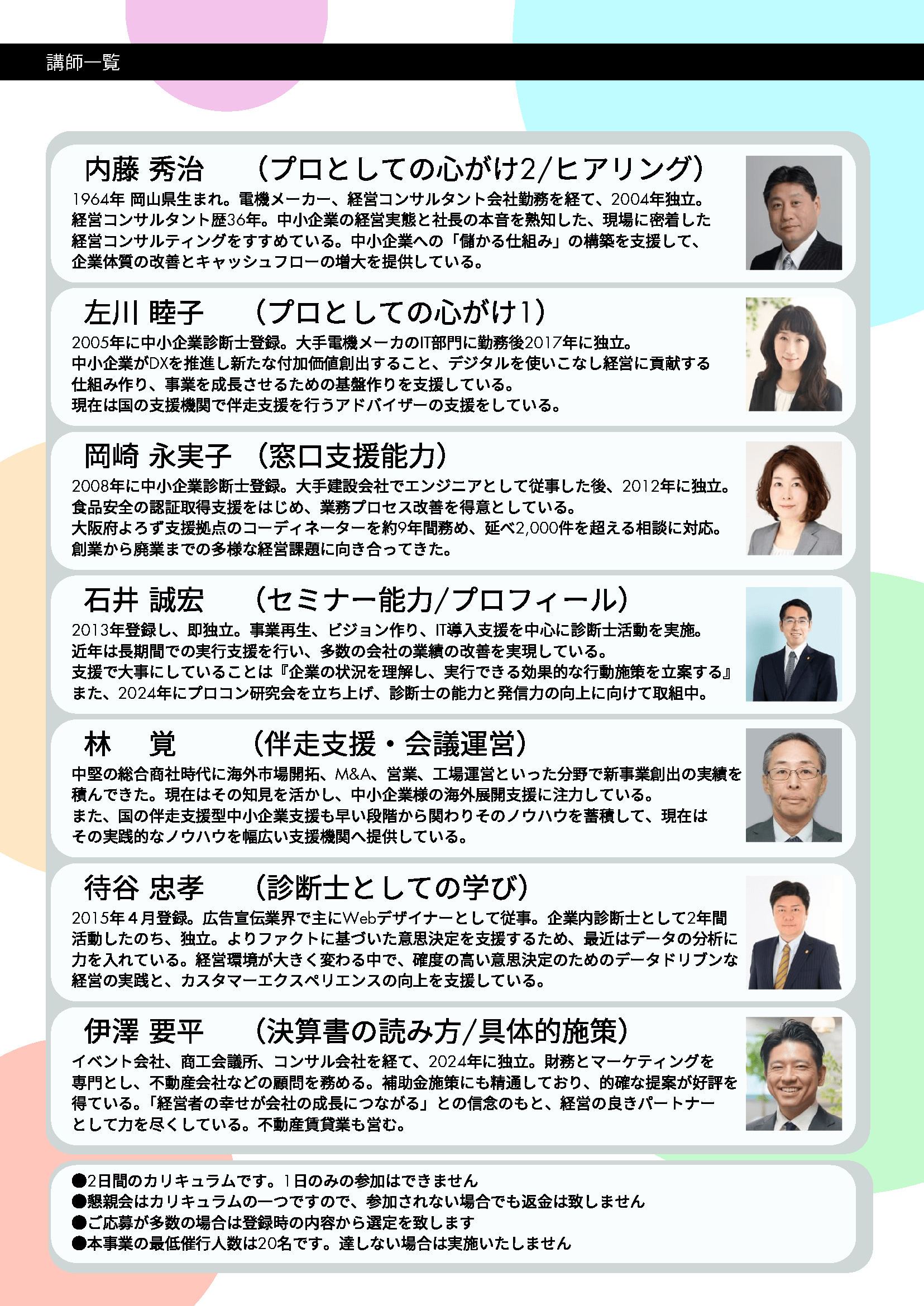 プロコンとして活躍している協会の理事を講師として、2日間でプロとして絶対に必要となる